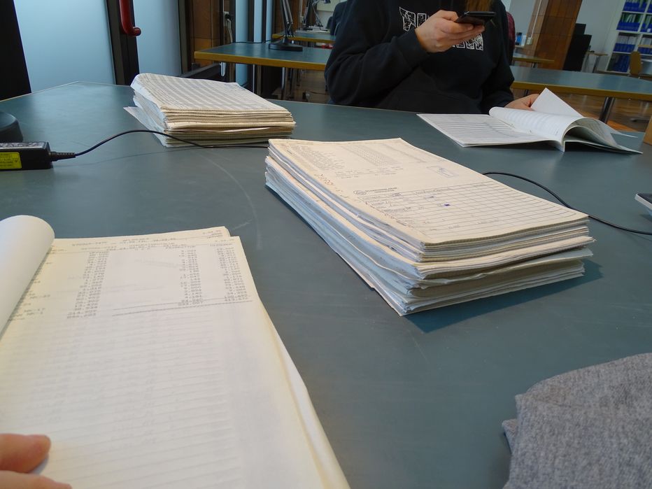 síðan vinna þetta í tölvu og reikna þetta upp.
