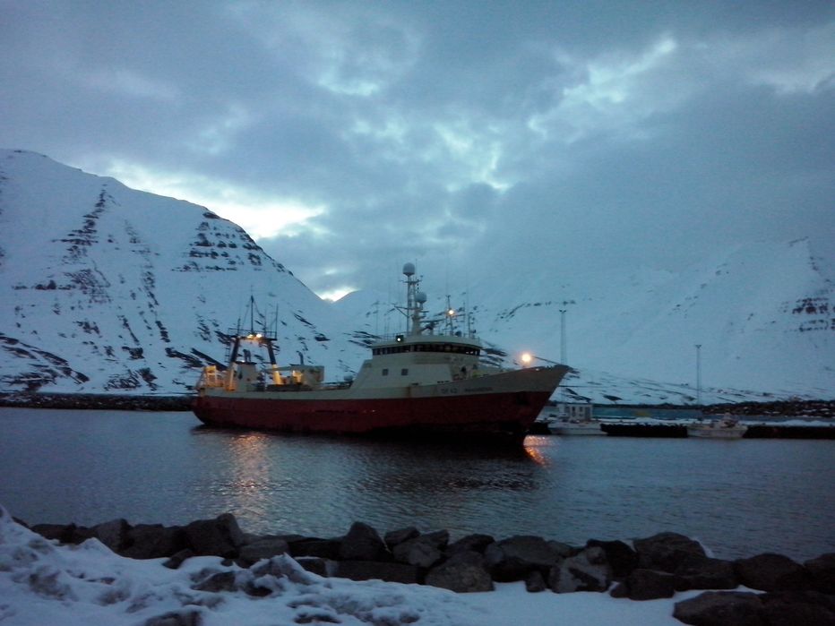 Mánaberg ÓF að koma til hafnar á Ólafsfirði. Myndir Gísli Reynisson
