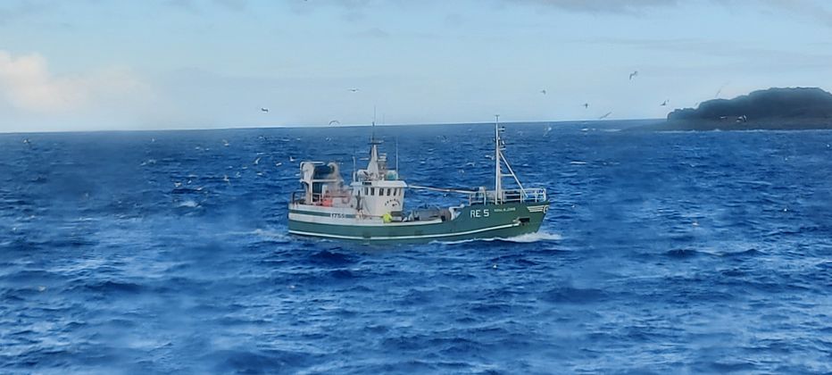 Set hérna inn mynd af Aðalbjörgu RE enn þessi mynd er tekinn útum gluggan á Herjólfi í sumar
