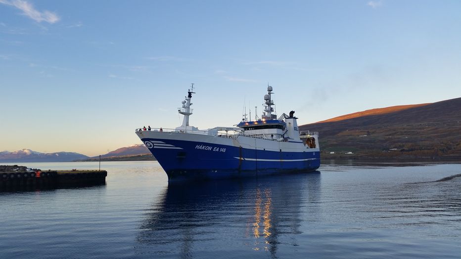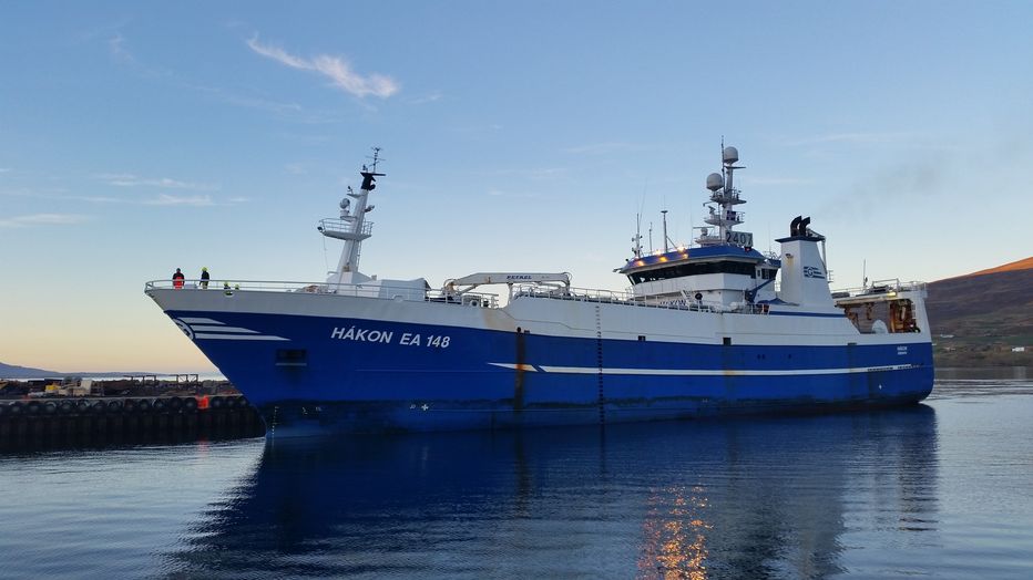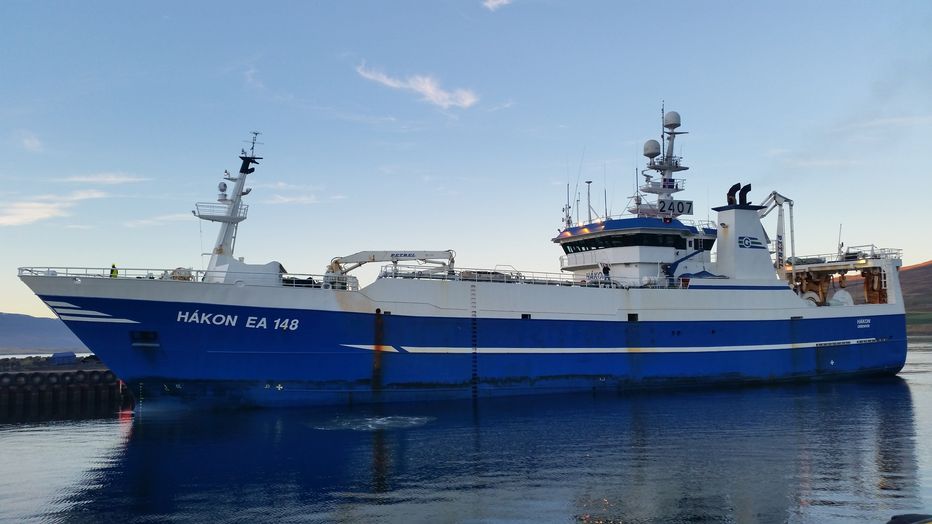 Var skipið tómt enn Hákon EA er að fara í flotkvínna enn það á að öxuldraga skipið og mála það,