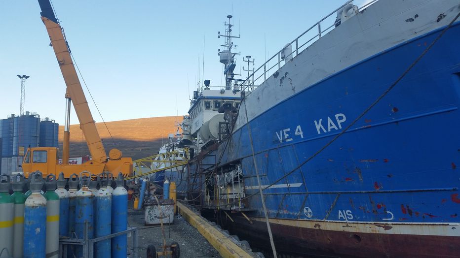 Kap VE í viðgerð og málun á Akureyri,2015
