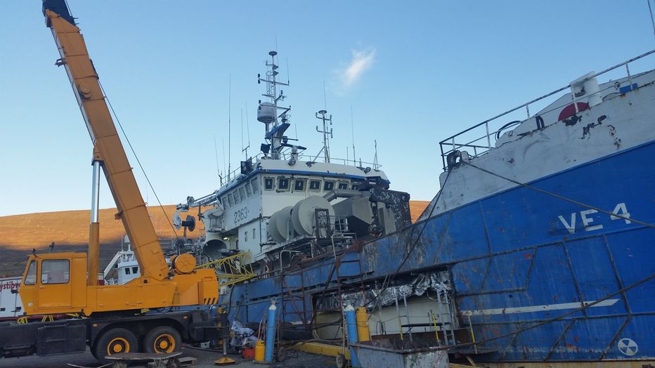 Byggjan í eyjum skemmti skrokkinn ansi mikið við áreksturinn