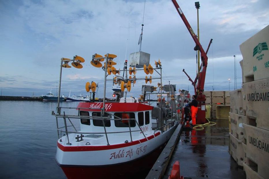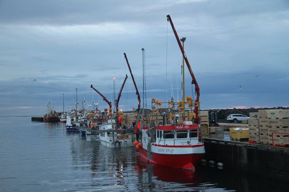 Verið að landa. Fremst Addi Afi GK. svo Guðrún Petrína GK. þar á eftir Hringur GK og síðan Pálína Ágústdóttir GK