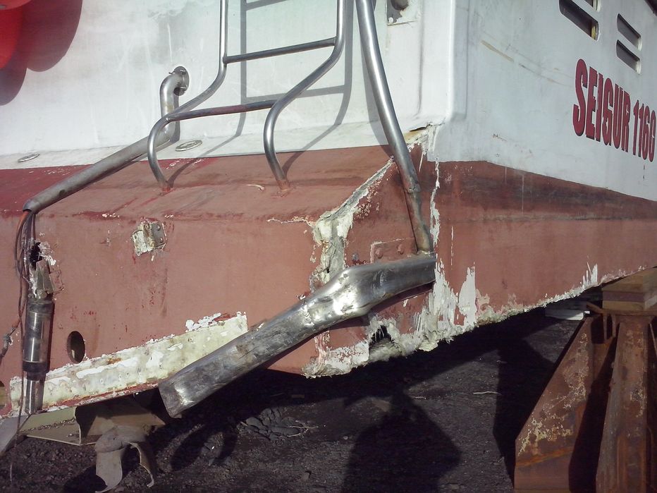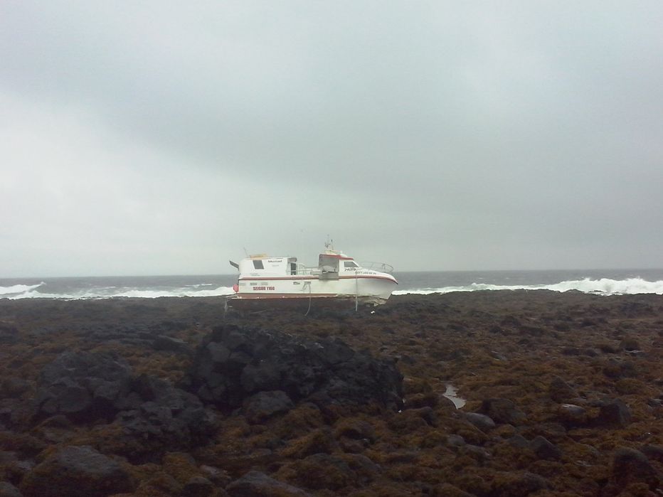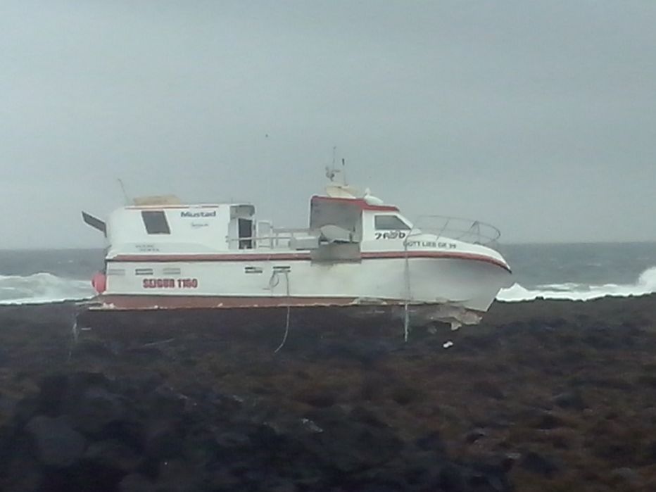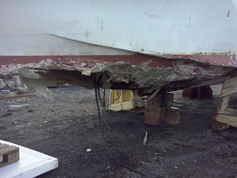 Skemmdir eru ansi miklar utanverðu og örugglega allt ónýtt inn í bátnum, eins og rafkerfi og tæki. Vélin bilaði og er þá væntanlega ónýt núna.