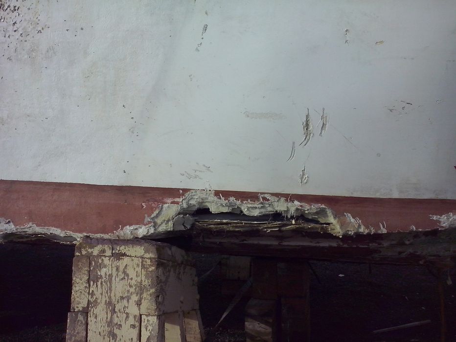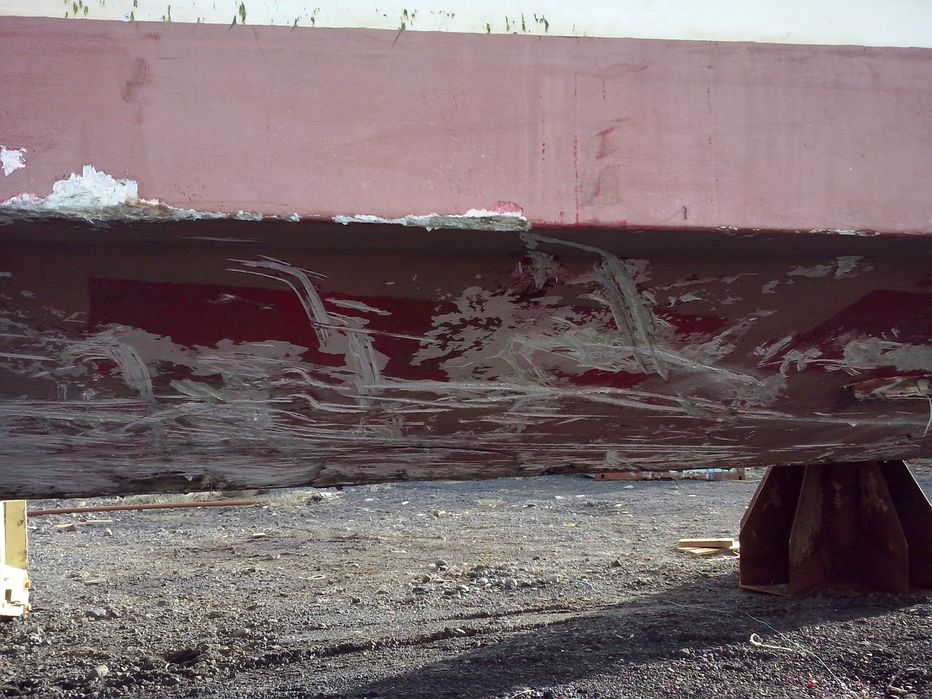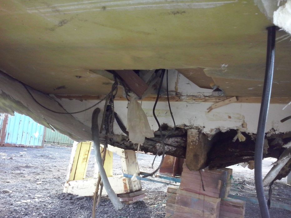 Séð undir bátinn að framan. opið þarna er upp í lúkarinn