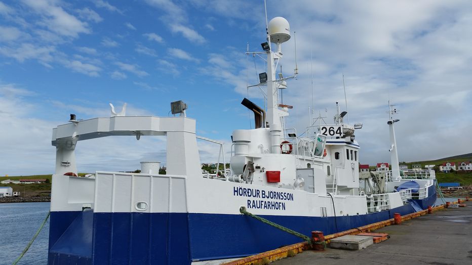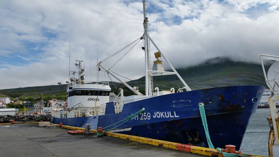 Hinum meginn liggur svo Jökull ÞH og er hann með svarta leppin yfir gluggunum.