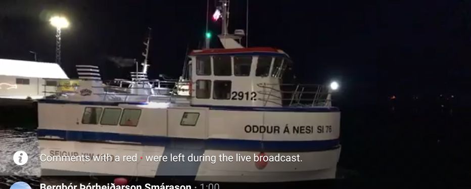Skjábrot af myndbandi sem Róbert Guðfinnson tók við komu Odds á Nesi SI til Siglufjarðar núna í dag 14.janúar.
