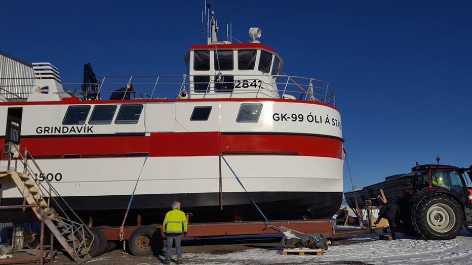 Núna í dag þá fór báturinn loksins á flot og ætti því að vera stutt í að báturinn komi suður með sjó til veiða.