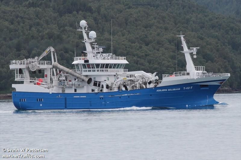 heitir þessi bátur ASBJØRN SELSBANE (T 0042T) Þessi bátur var smíðaður árið 2013 og er því ekki nema um 2 ára gamall. Báturinn er 55 metrar á lengd og 12,8 metrar á breidd. mælist 1191 BT. í honum er 3500 hestafla vél.