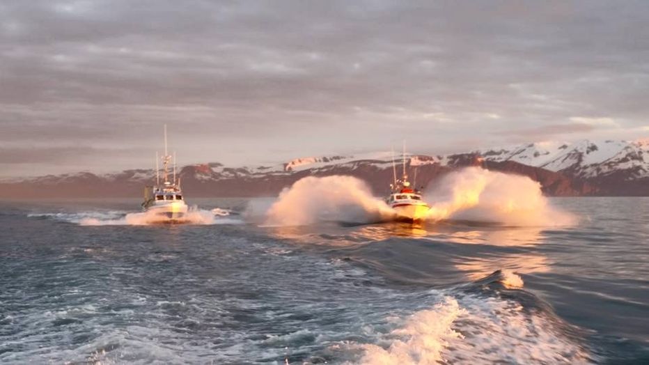 bakvið hann til vinstri var svo Aron ÞH að sigla á 13 mílum og til hliðar við hann var svo Sigrún Hrönn ÞH að sigla á 24 mílum.