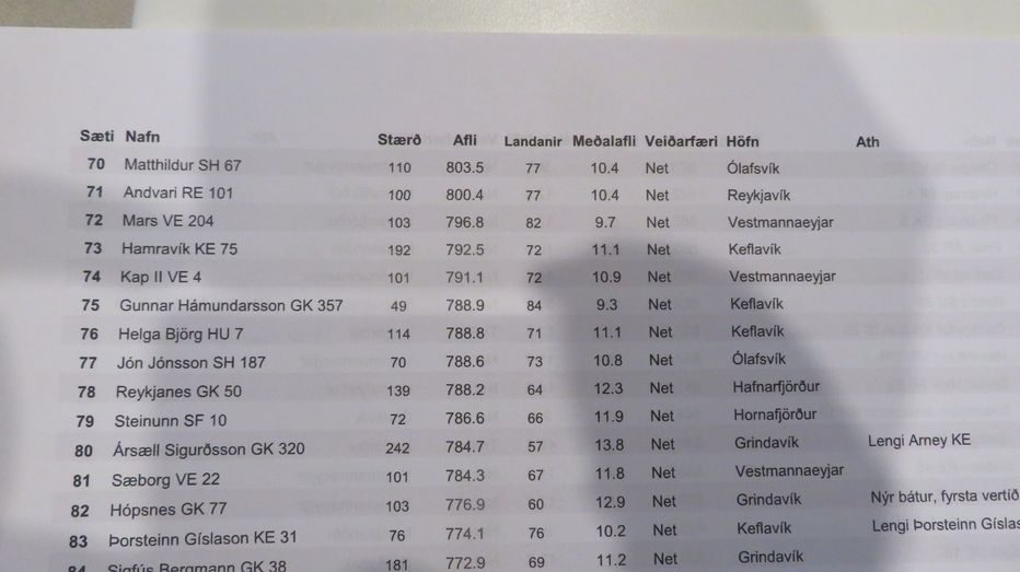 birtur sér listi yfir netabátanna