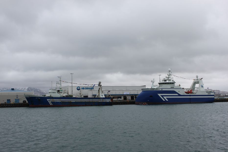 Ásbjörn RE og Engey RE.  nokkuð mikill stærðarmunur