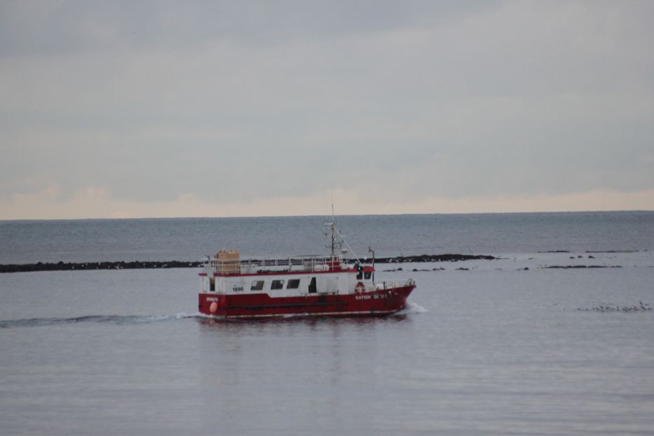 KAtrín GK kom með fullfermi til Sandgerðis og þurfti að skilja eftir 12 bala í sjó. þarna er báturinn að fara út aftur til að draga restina af línunni.